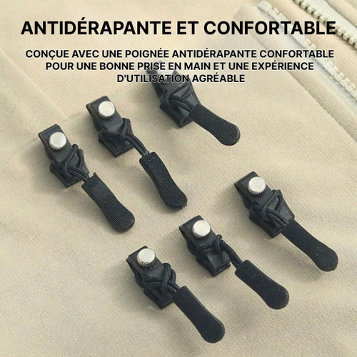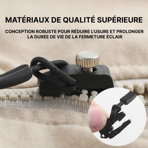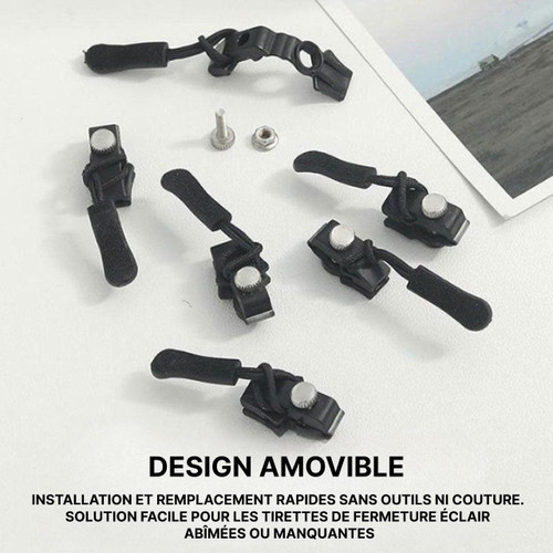 Aucun outil ni couture nécessaire. L'installation et le remplacement se font rapidement. Elle permet de remplacer facilement les tirettes de fermeture éclair abîmées ou manquantes, tout en apportant un aspect renouvelé à vos vêtements et accessoires.