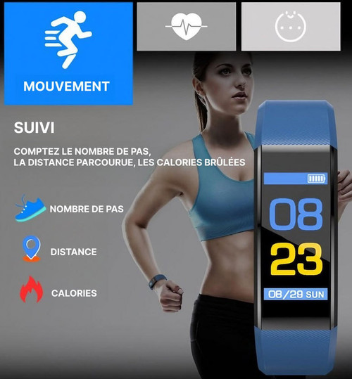 Restez en forme toute la journée avec cette nouvelle Montre Connectée Avec Bluetooth et améliorer votre quotidien. Surveillez l'intensité de vos exercices, le nombre de calories brûlées et autres données en temps réel.
