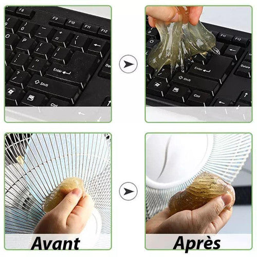 - Déposez le gel sur la surface à nettoyer, appuyez dessus 2 ou 3 fois et soulevez-le.