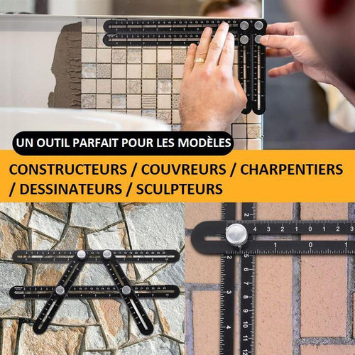 Outil De Mesure 2-en-1 qui convient à un positionnement précis des perçages en céramique. La règle angulaire universelle est constituée de 6 côtés et de 6 boutons métalliques qui se plient librement. Il suffit de les ajuster pour créer avec précision la forme que vous souhaitez. Rend vos travaux de mesure rapides et faciles.