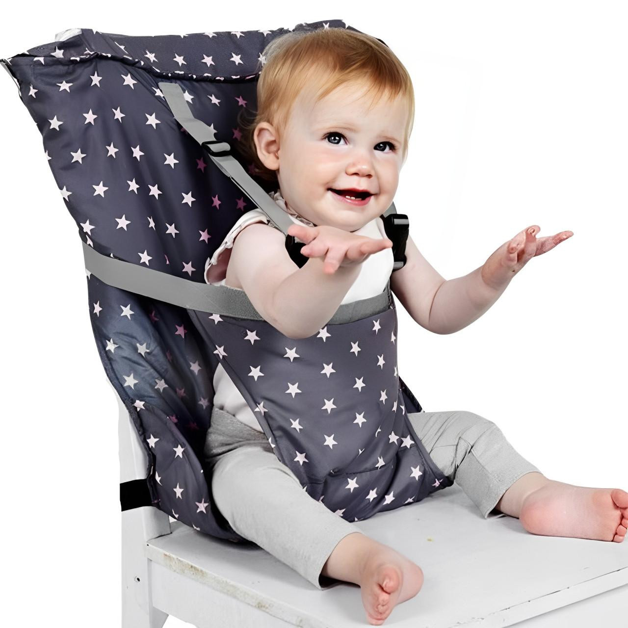 Un Siège Bébé Portable Pliable compatible avec la majorité des chaises, à utiliser facilement à la maison comme en déplacement.