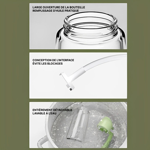 Bien plus qu'un simple distributeur d'huile, cet outil convient pour une grande variété de liquides, tels que l'huile de cuisson, le vinaigre, la sauce soja et bien d'autres.