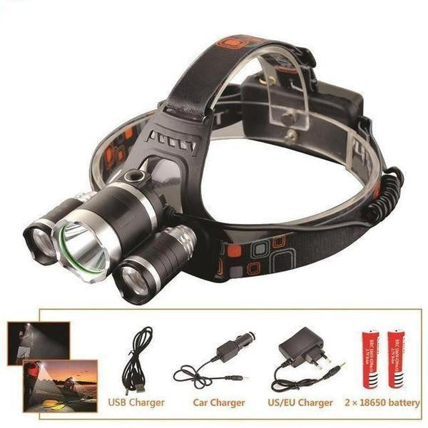 LAMPE FRONTALE LED 12000 LUMEN 3 x XML T6 - Chargeur au choix pour le camping, la chasse ou la pêche